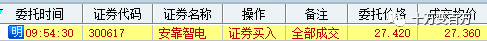 打板买入安靠智电,27.36元成交,三分之一仓位。12.08元卖出世纪华通。7.70元卖出读者传媒。
