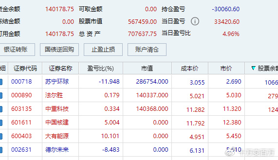 目前持有股票如下,总仓位8成,起始资金10万,目前总资产70.7万,总收益607%。