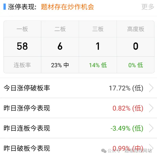 昨天我选出的首板票,只有三孚股份成功二连板,一进二的晋级率只有14%左右,非常低。