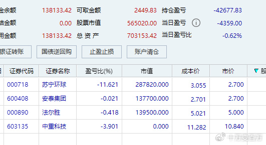 目前持有股票如下,总仓位8成,起始资金10万,目前总资产70.3万,总收益603%。