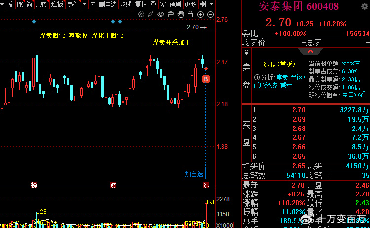 今天打板了一个安泰集团,回封时买入的。现在打板直接冲上去的看似诱人,但炸板率太高,只有回封板确定性更高。