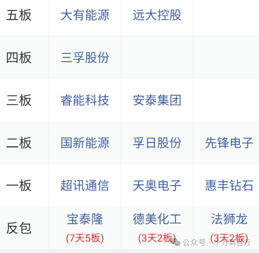 大有能源5连板了,还有个远大控股天地天板,也是5连板,真太强悍了!短线情绪比较好啊,明天可以搞二板了。明日关注的首板票: