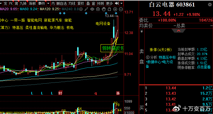 后面看到上周三纳入自选股的白云电器回封涨停,立即排队上,连消息都来不及发。可惜到收盘都没有成交,是不是要错过一个亿啊!