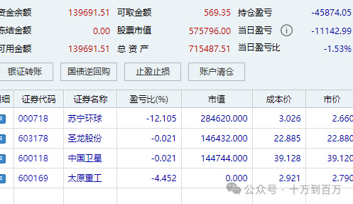 目前持有股票如下,总仓位8成,起始资金10万,目前总资产71.5 万,总收益615%。
