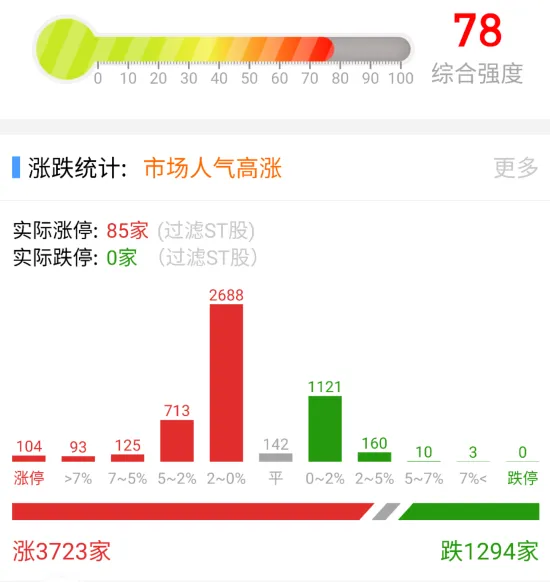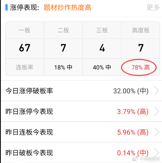 今天高度板晋级率78%,四板以上的票有8个之多,感觉短线炒作达到了高潮!回调随时来临!