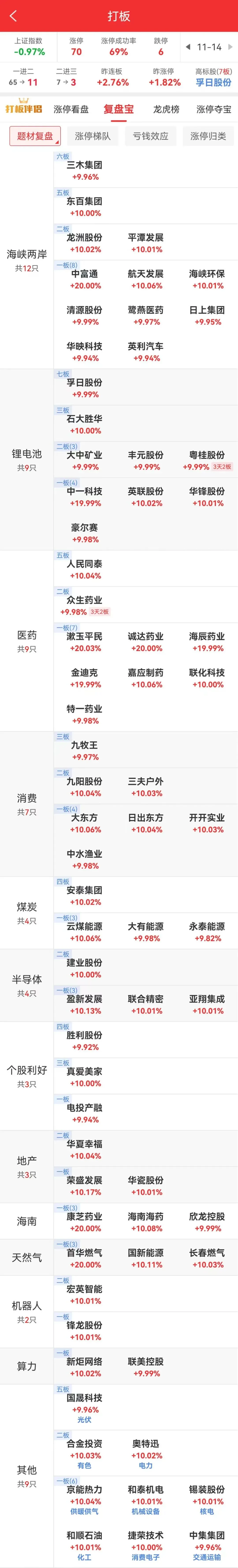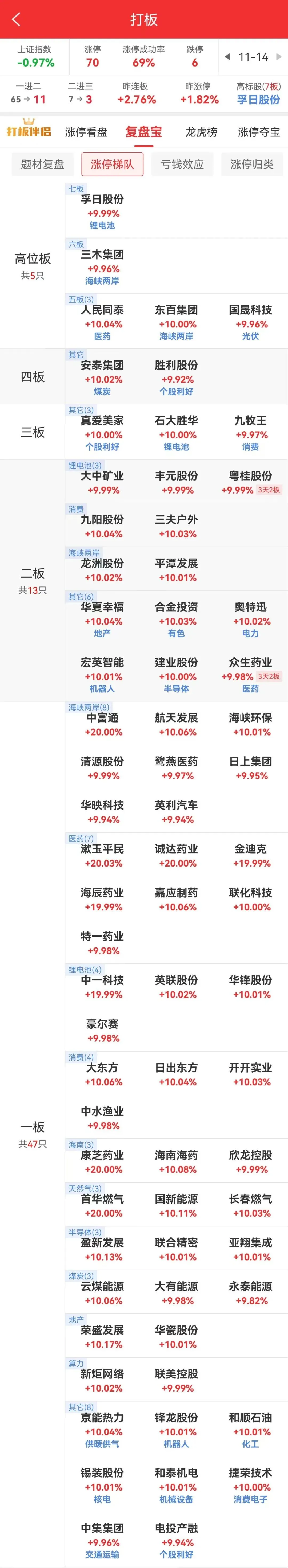 [color=rgba(0, 0, 0, 0.9)]锂电池板块孚日股份大单一字七连板,石大胜华三连板,20cm华盛锂电涨16%。此外医药板块人民同泰五连板,众生药业三天二板,20cm金迪克五天三板。