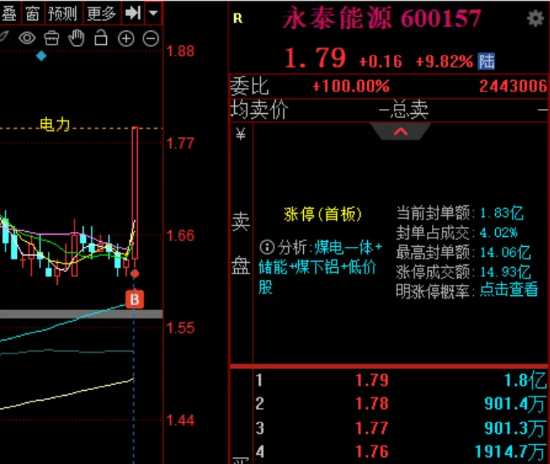 [color=rgba(0, 0, 0, 0.9)]永泰能源是低价+煤炭概念,另外有个玄学概念:泰字辈!带泰字的人民同泰、安泰集团、和泰机电涨停。再加上前几天表现强势的合力泰、宝泰隆、闻泰科技、法兰泰克、海泰发展、泰永长征、江苏国泰、泰禾智能等。这次泰王也破天荒来访问了。