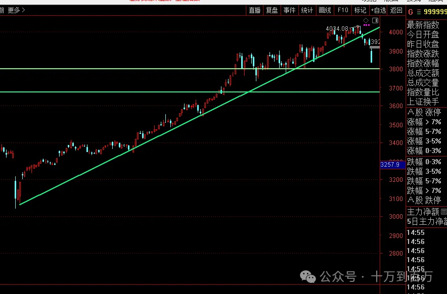 上升通道已经完全破坏,下一支撑在所画的两条绿线处,分别是:3800和3674点。前者支撑较弱,后者是强支撑。