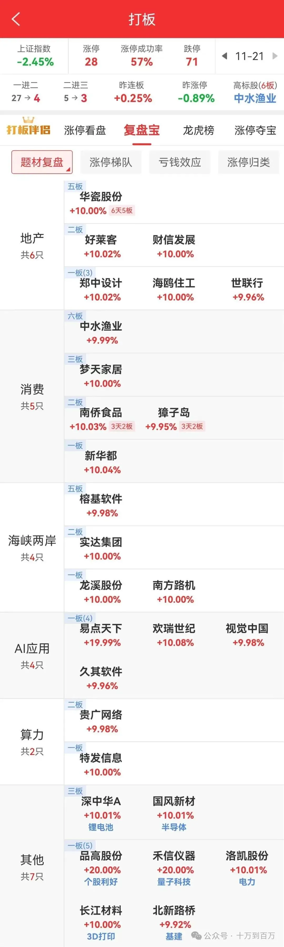 市场整体氛围低迷,题材全天弱势轮动。AI应用端榕基软件五连板,视觉中国四天二板,易点天下涨停,浪潮软件午后冲板回落。