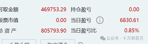 目前持有股票如下,总仓位0成,起始资金10万,目前总资产80.5 万,总收益705%。
