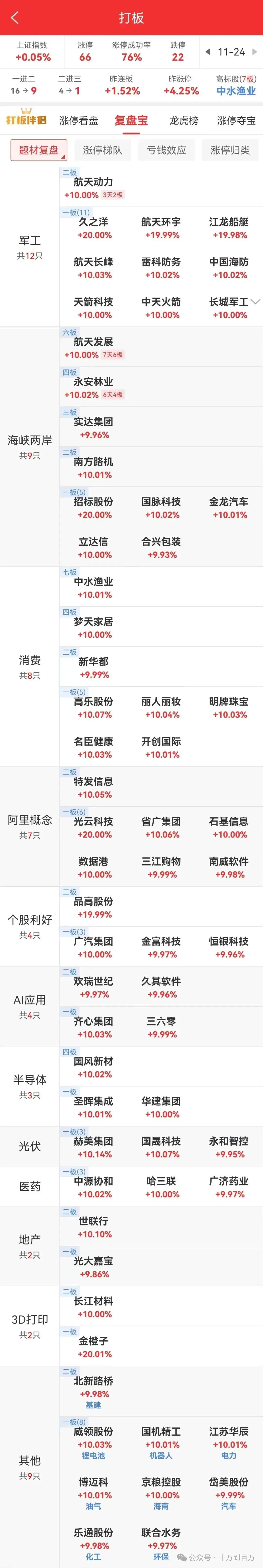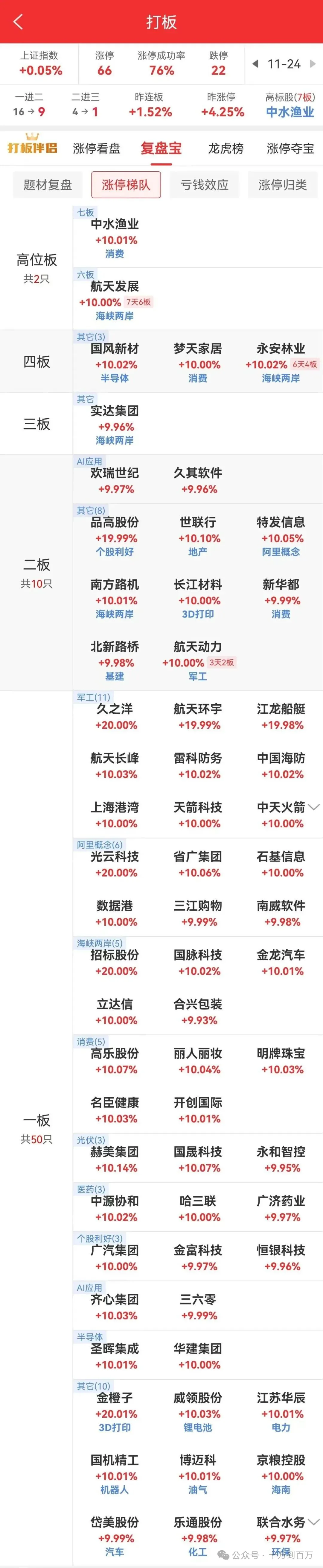 对日反制概念军工分支久之洋反包涨停,航天发展七天六板,20cm江龙船艇六天三板。水产中水渔业七连板,芯片概念国风新材四连板。
