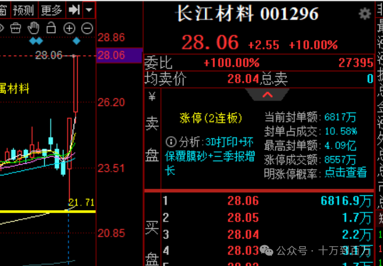 周五没有上车的长江材料成功二连板,错过一个涨停。