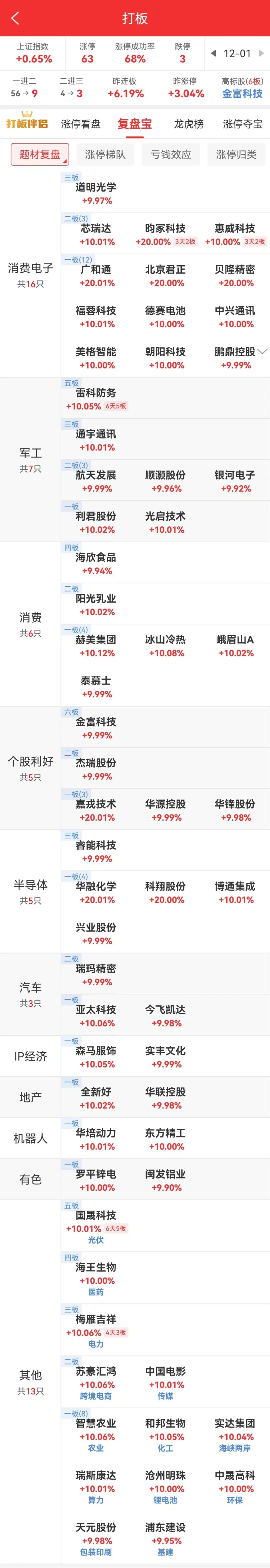 大消费海欣食品四连板,茂业商业炸板。芯片(光刻胶)国风新材首板,容大感光炸板。另有航运、医药、冰雪经济等轮动。