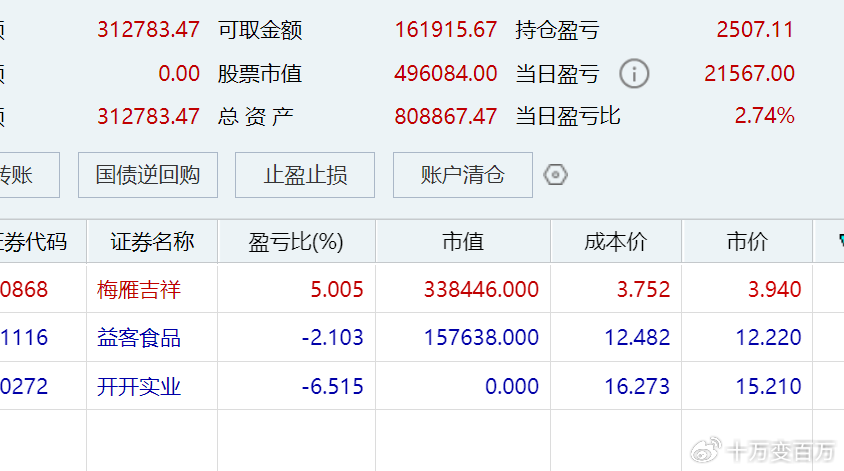 目前持有股票如下,总仓位6成,起始资金10万,目前总资产80.8 万,总收益708%。