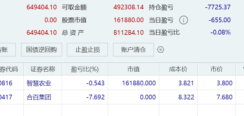智慧农业早上冲高4个点没走,因为仓位比较轻,就相对佛系了,所以继续拿着。