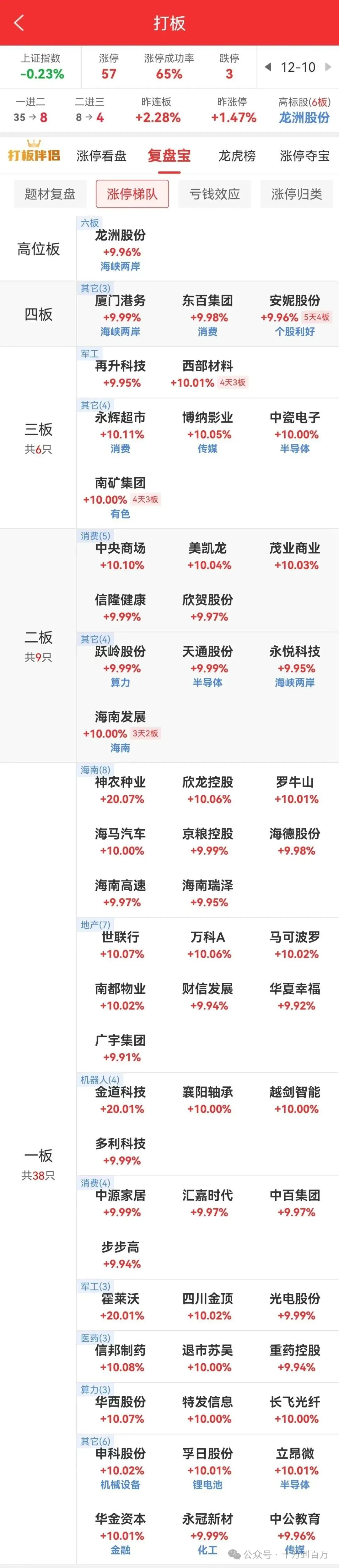 另有热门题材商业航天再升科技三连板,西部材料四天三板。海峡两岸(福建)龙洲股份六连板,厦门港务四连板。