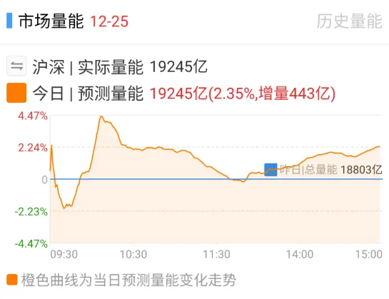 三大指数分化后震荡走强,午后集体翻红,收盘两市总成交超1.9万亿,相较前一交易日小幅放量2%,上涨个股超3500家。