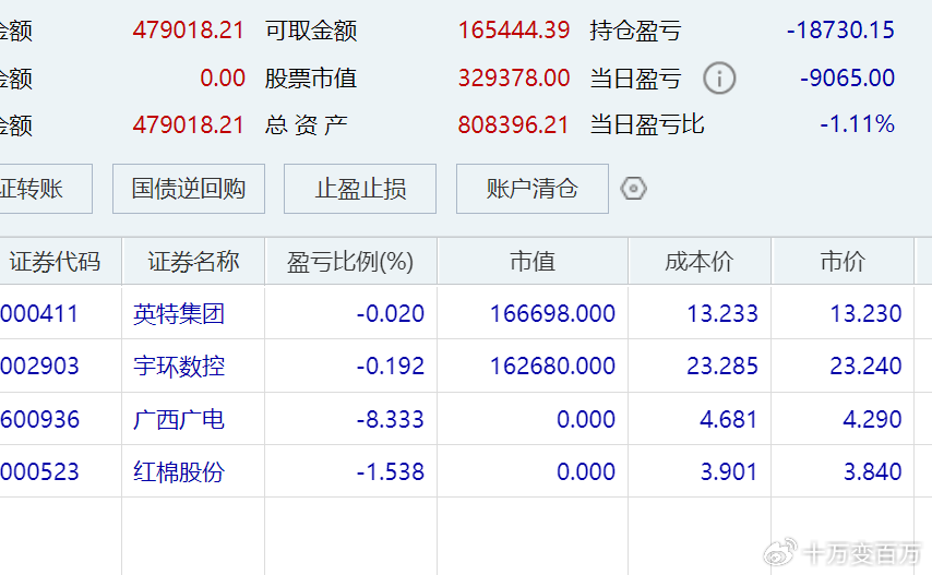 目前持有股票如下,总仓位4成,起始资金10万,目前总资产80.8万,总收益708%。
