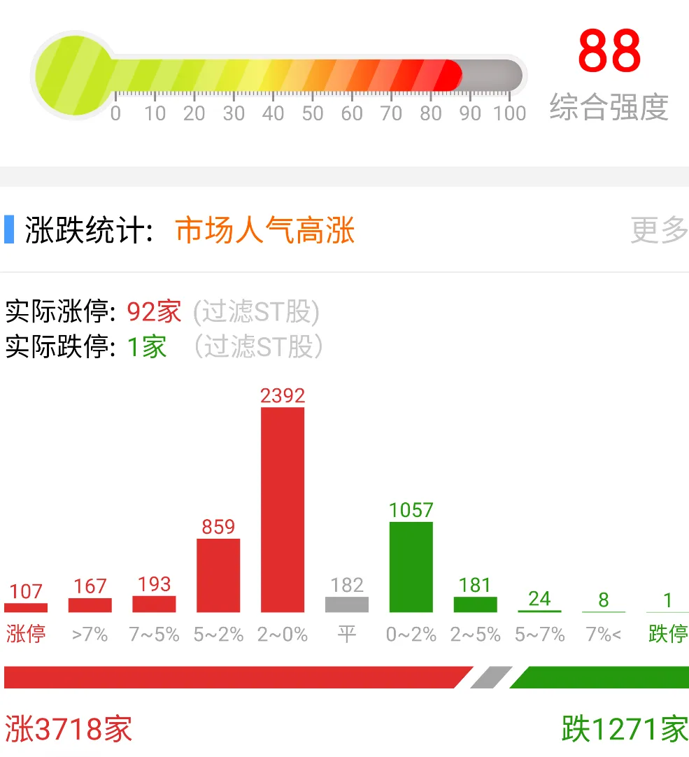 短线情绪整体强势,高位股鲁信创投十一天九板,中国卫通九天五板,金风科技等回封涨停,此外20cm连板志特新材五连板,邵阳液压三连板。