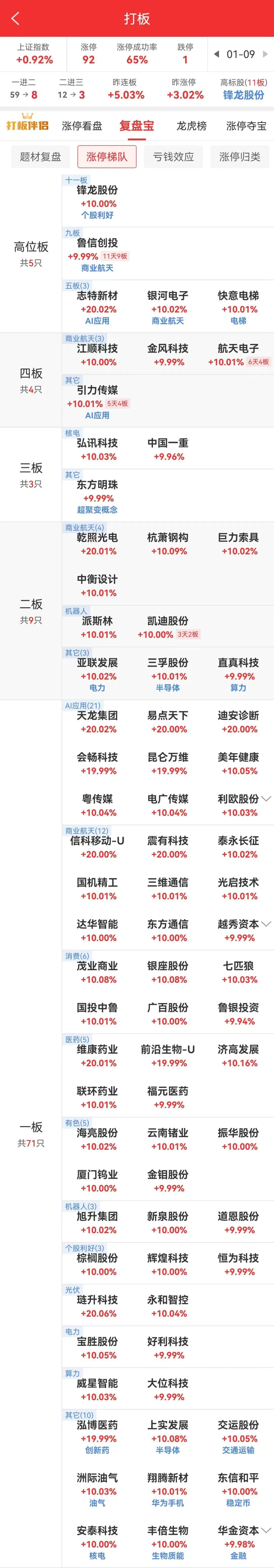 商业航天鲁信创投、杭萧钢构等多股大单一字,金风科技、航天电子回封涨停,中国卫通九天五板。