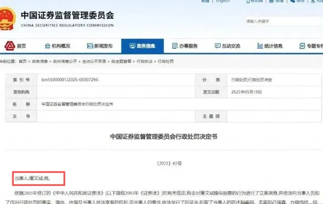 在2025年6月,证监会公布对屠文斌操纵股价案的处罚决定,罚没金额合计近7700万元。在涉案期间,他通过连续交易、拉抬股价、大额封涨停、虚假报撤等一系列违规手法,扰乱市场正常秩序,为自己谋取私利,违法所得共计3627.3万元。而且,2017年还因为短线交易被吉林证监局处罚。