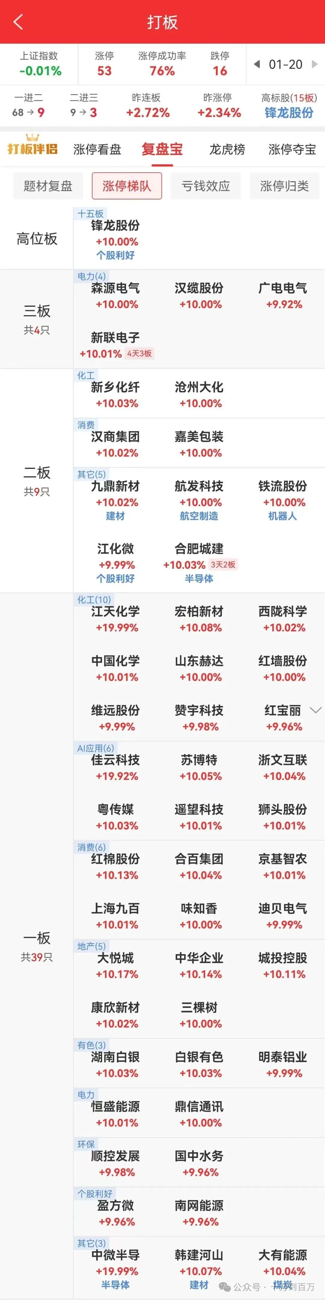 化工板块相对强势,沧州大化二连板,山东赫达、红宝丽等多股首板。智能电网汉缆股份、森源电气一字三连板,权重中国西电午后触及二连板,三变科技等冲板回落。此外AI应用端浙文互联T字板,权重蓝色光标高位震荡,但有易点天下一字跌停。
