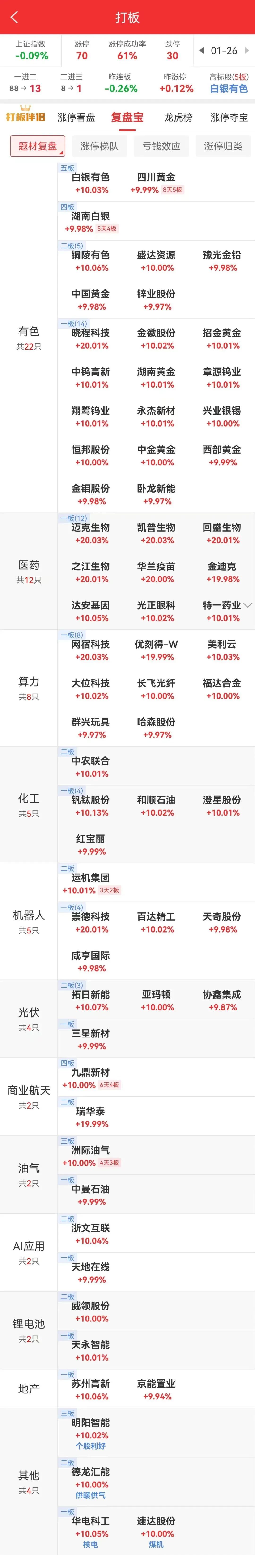 算力概念优刻得回封20cm涨停。短线情绪弱势,前期高位股中国卫星等30家个股跌停,连板双良节能等多股炸板,整体负反馈明显。