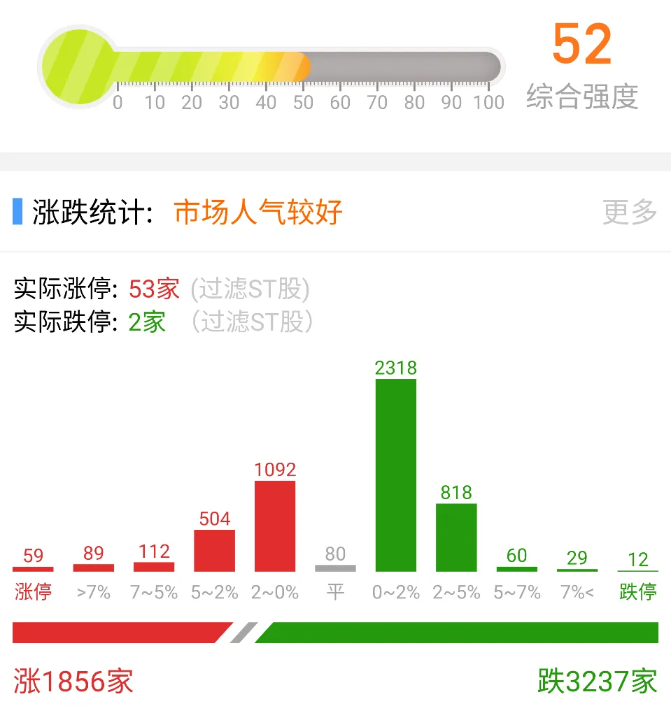 三大指数下探回升,午后集体翻红,收盘两市总成交不足3万亿,相较前一交易日缩量11%,下跌个股超3000家。市场下探回升,题材全天弱势轮动。