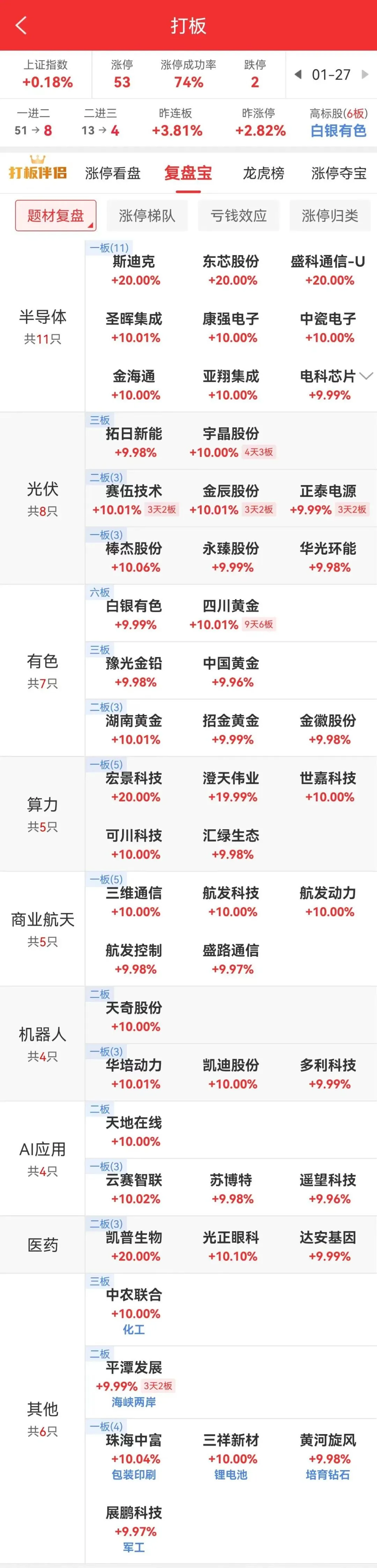 商业航天电科芯片首板,西部材料、再升科技炸板。医药(病毒防治)、人工智能硬件、燃气轮机、DeepSeek概念等轮动。