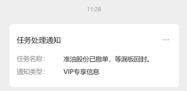 另一个准油股份,第一时间打板,排队十多分钟还没成交,先撤单观望,等回封再上,不过下午因为有事没有及时上车,不知道大家有没有上车?