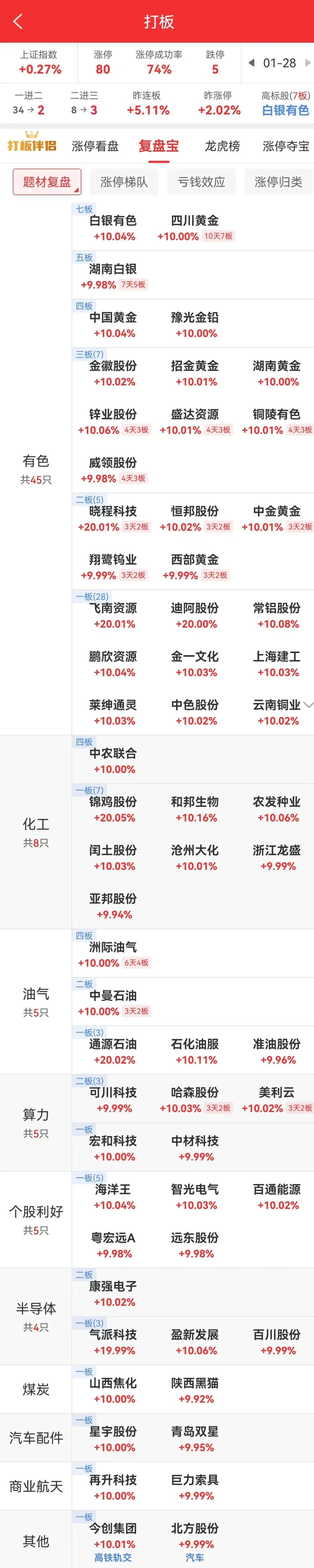 黄金白银的走势不仅带动了铜板块,今天还带动了铝板块,进而带动了整个有色板块走强。