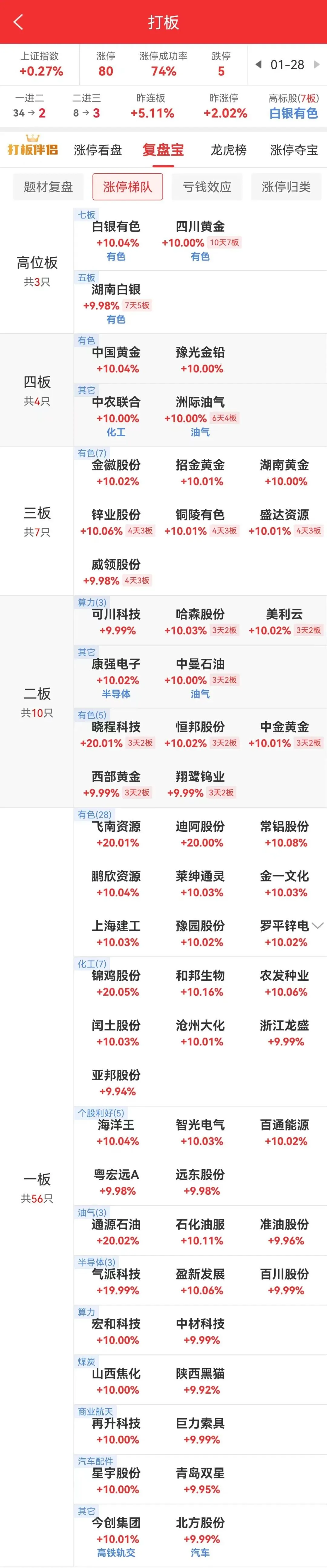 油石化通源石油涨停。芯片康强电子二连板,商业航天再升科技午后涨停。另有太空光伏概念双良节能、拓日新能冲板回落。光纤概念长飞光纤、算力网宿科技等炸板。煤炭、农业等小幅轮动。