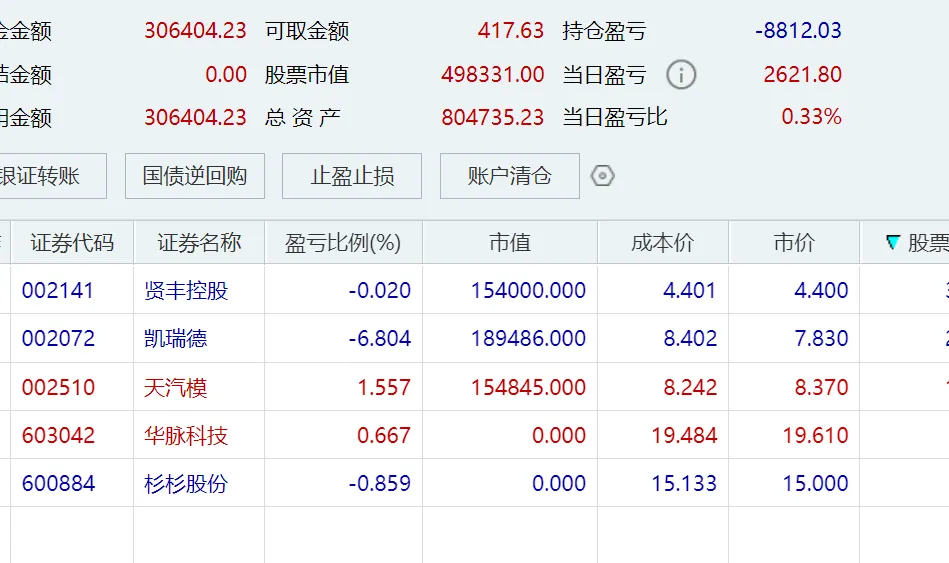目前持有股票如下,总仓位6成,起始资金10万,目前总资产80.4万,总收益704%。