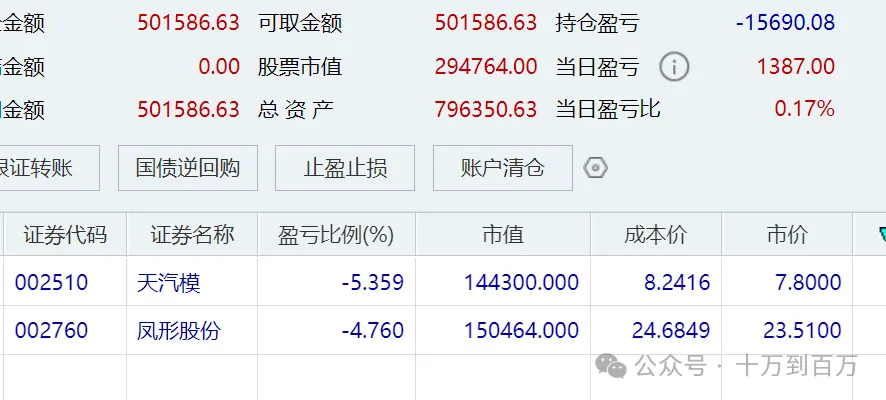 目前持有股票如下,总仓位4成,起始资金10万,目前总资产79.6万,总收益696%。