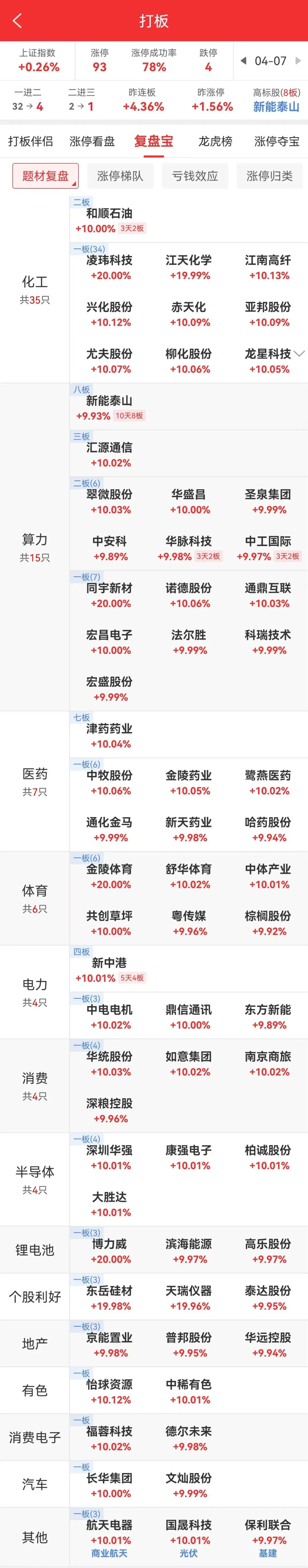 市场氛围修复,部分题材强势轮动。其中化工板块东岳硅材20cm秒板,江南高纤、合盛硅业等多股首板,六国化工等午后涨停,板块近30家个股涨停。
